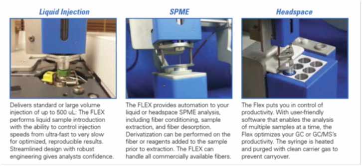 Flexible GC and GC/MS Autosampler for · Liquid Injection · SPME · Headspace |